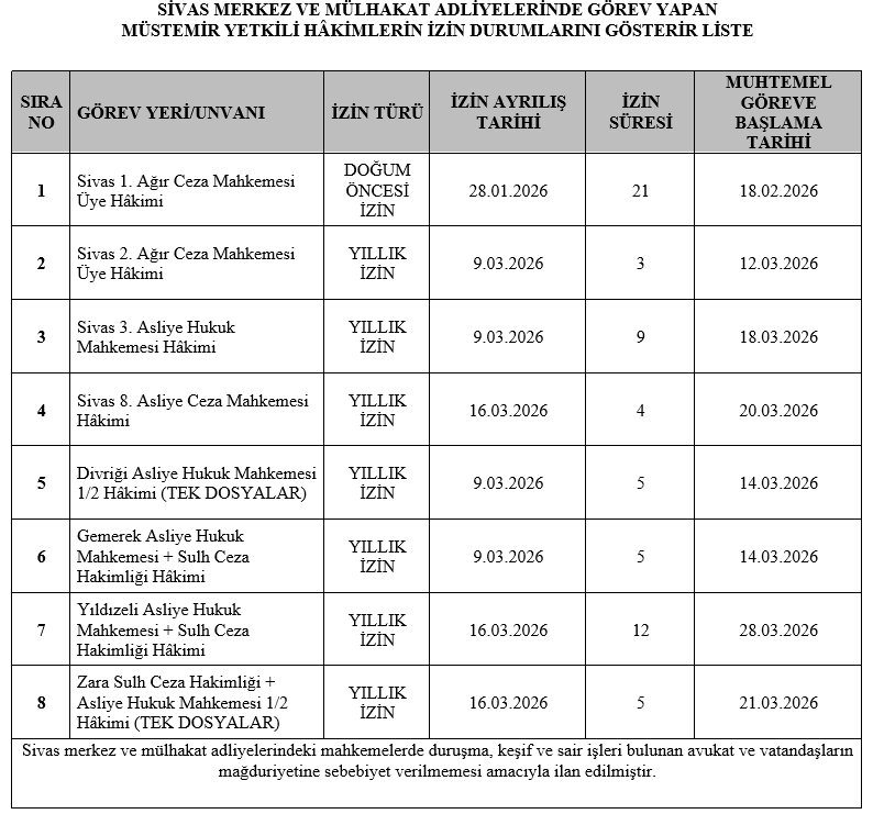 Müstemir Yetkili Hakimlerin İzin Durumlarını Gösterir Liste